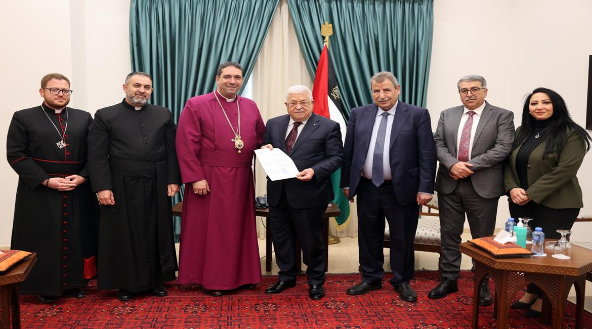 جاء ذلك خلال استقبال سيادته، اليوم السبت، بمقر الرئاسة، رئيس الأساقفة الأنجليكاني في القدس، الأسقف الخامس عشر لمطرانية القدس الأسقفية العربية المطران حسام نعوم، بحضور رئيس اللجنة الرئاسية العليا لمتابعة شؤون الكنائس في فلسطين رمزي خوري، ونائب رئيس المجلس الوطني الفلسطيني موسى حديد، وعضو اللجنة الرئاسية العليا لشؤون الكنائس أميرة حنانيا.