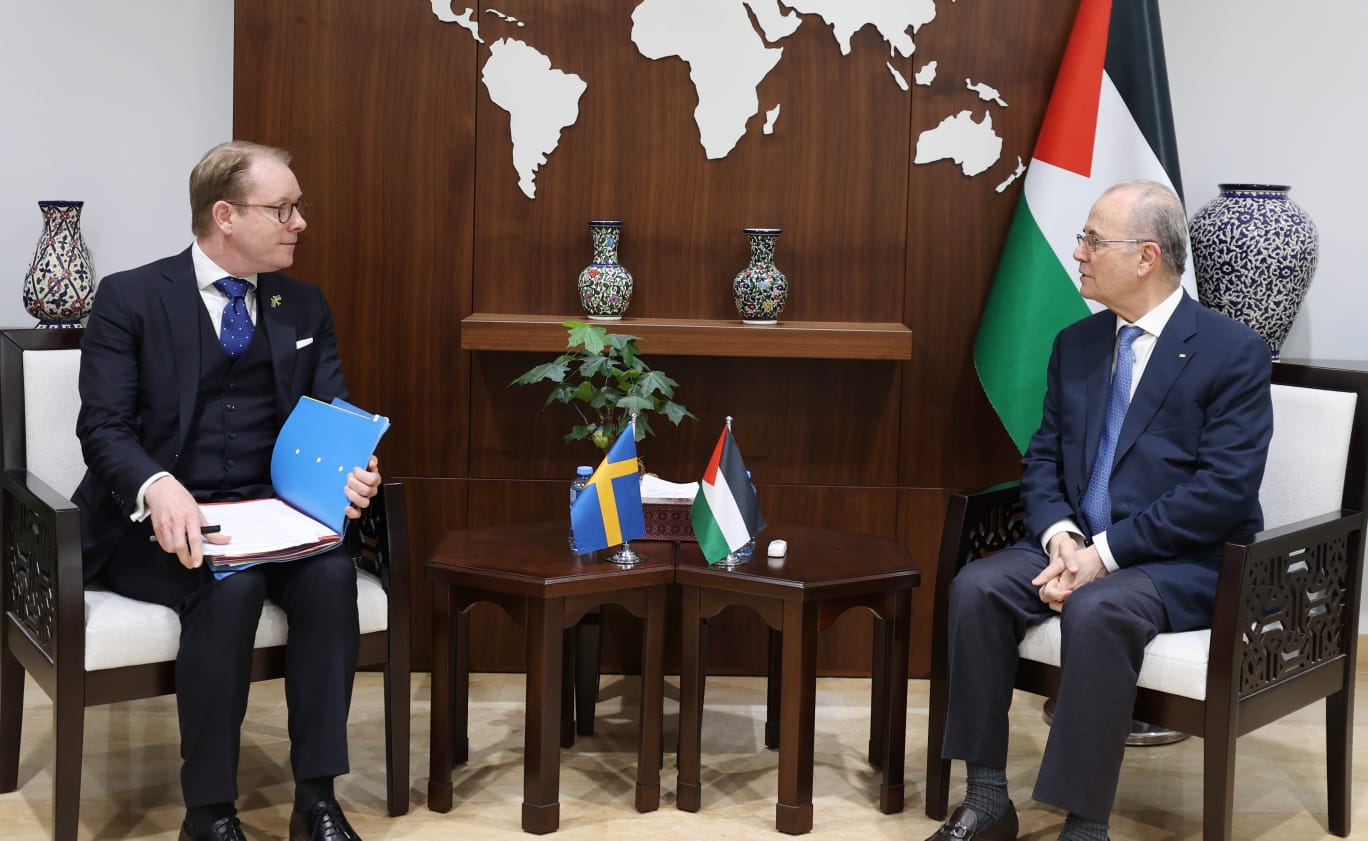 كما ثمن رئيس الوزراء دعم السويد المستمر لفلسطين وموقفها الثابت الداعم لحل الدولتين والشجاع باعترافها بدولة فلسطين، داعيا في هذا السياق الدول التي لم تعترف بدولة فلسطين للمسارعة والاعتراف بها لدعم لحل الدولتين والحفاظ عليه.