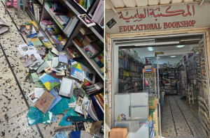 وكانت قوات الاحتلال قد استولت الشهر الماضي على مجموعة كتب تتعلق بفلسطين، واعتقلت اثنين من مالكي المكتبة خلال مداهمتها، وهما الشقيقان محمود وأحمد منى، بذريعة “الإخلال بالنظام العام وبيع كتب تحريضية”.