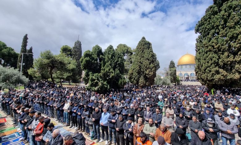 وقدرت دائرة الأوقاف الاسلامية في القدس بأن 80 ألف مصل أدوا الجمعة في الأقصى، فيما فرضت قوات الاحتلال، قيودا مشددة على دخول المصلين القادمين من الضفة الغربية إلى مدينة القدس المحتلة.