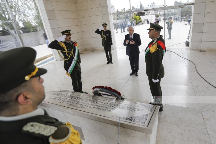 كما وضع رئيس الوزراء، وزير الخارجية محمد مصطفى، اليوم الأحد، إكليلا من الزهور على ضريح الرئيس الشهيد ياسر عرفات، بمناسبة عيد الفطر المبارك، بمشاركة عدد من أعضاء الحكومة.
