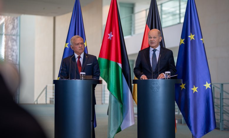 العاهل الأردني والمستشار الألماني يؤكدان ضرورة استعادة وقف إطلاق النار في قطاع غزة