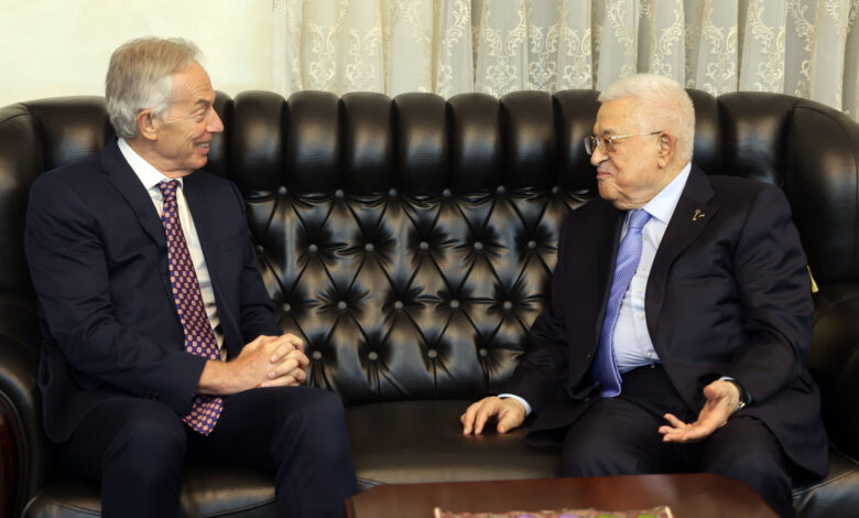 عمّان – فينيق نيوز – التقى رئيس دولة فلسطين محمود عباس، مساء اليوم الأحد، رئيس الوزراء البريطاني الأسبق والمبعوث السابق للجنة الرباعية الدولية توني بلير، في مقر إقامته بالعاصمة الأردنية، عمّان.