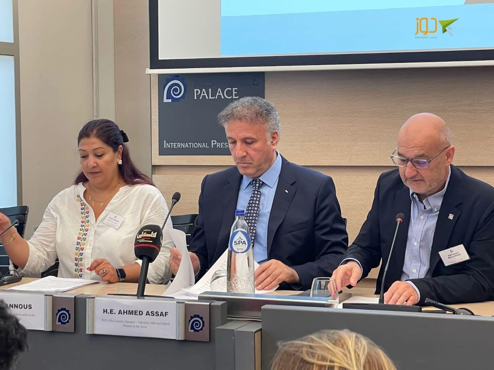 جاء ذلك خلال مشاركة الوزير عساف في مؤتمر عُقد في مقر الاتحاد الدولي للصحفيين في عاصمة الاتحاد الأوروبي بروكسل، حيث أعلن الاتحاد، بالتعاون مع نقابة الصحفيين الفلسطينيين، والهيئة التأسيسية لجمعية وسائل الإعلام الفلسطينية المستقلة، والصندوق العالمي لدعم الإعلام العمومي “إف بام”، إنشاء صندوق خاص لدعم الإعلام الفلسطيني.