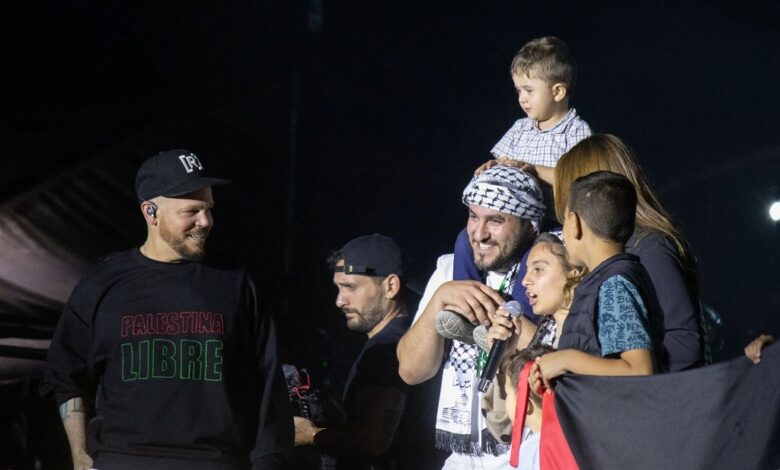 وارتدى ريزيدينتي قميصا كُتب عليه بالإسبانية “فلسطين حرة”، وأوقف أداءه ليدعو إلى المسرح خمسة أطفال من عائلة عابد، الذين وصلوا مؤخرا إلى المكسيك كلاجئين من غزة، إلى جانب سفيرة فلسطين نادية رشيد. رفع الأطفال العلم الفلسطيني، وأخذت الطفلة ألما عابد الميكروفون لتصرخ بقوة: “أوقفوا الإبادة الجماعية! عاشت فلسطين! الحرية لفلسطين!”، فرددت الحشود كلماتها في مشهد مؤثر غمر الساحة.