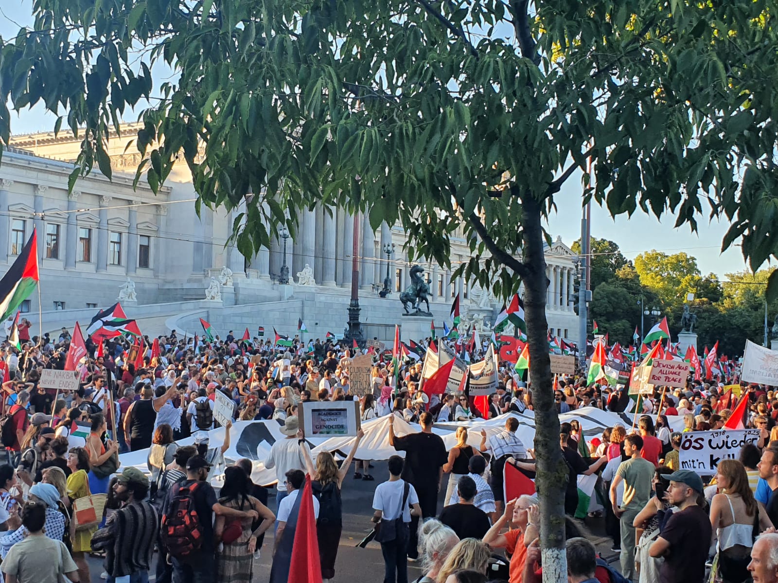 ووصفت التظاهرة بأنها صرخة ضمير إنساني من قلب العاصمة فيينا، ورسالة واضحة إلى صانعي القرار بأن القضية الفلسطينية لم تعد قضية بعيدة، بل أصبحت حاضرة بقوة في الشارع الأوروبي، وأن صمت العالم أمام الإبادة لم يعد مقبولًا.