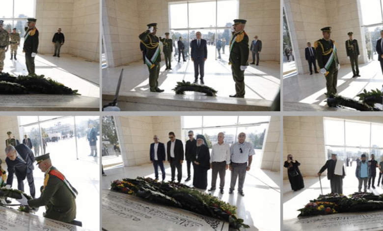 وضع نائب رئيس دولة فلسطين، نائب رئيس اللجنة التنفيذية لمنظمة التحرير الفلسطينية حسين الشيخ، اليوم الثلاثاء، إكليلا من الزهور على ضريح الشهيد القائد ياسر عرفات، نيابة عن الرئيس محمود عباس.