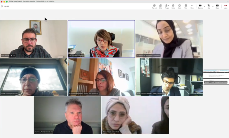رام الله – فينيق نيوز –  عقدت المكتبة الوطنية الفلسطينية، اجتماعًا دوليًا مع ممثلي أقسام المكتبات الوطنية في كل من مكتبة قطر الوطنية، والمكتبة الوطنية الاسكتلندية، والمكتبة الوطنية الفرنسية، في إطار التعاون مع الاتحاد الدولي لجمعيات ومؤسسات المكتبات (الإفلا)، لبحث سبل تطوير نظام الإيداع القانوني ومواكبة التحولات الرقمية في عمل المكتبات الوطنية.